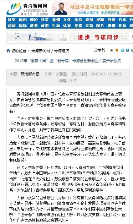 由青海省經(jīng)濟(jì)和信息化委員會、青海省財政廳和共青團(tuán)青海省委聯(lián)合主辦的2018年“創(chuàng)客中國”暨“創(chuàng)青春”青海省創(chuàng)新創(chuàng)業(yè)大賽決賽經(jīng)過4個多月的精心籌備已于8月10日在青海省廣播電視臺圓滿落幕。